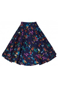 Sukně Lindy Bop tmavě modrá s motivem motýlů, řasení v pase