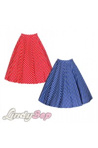Sukně Lindy Bop modrá s bílým puntíkem anebo červená s bílým puntíkem, řasení v pase