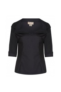 Krásný top ve stylu 50. let, z příjemného elastického materiálu, s dlouhým rukávem a límečkem s ozdobným knoflíkem.