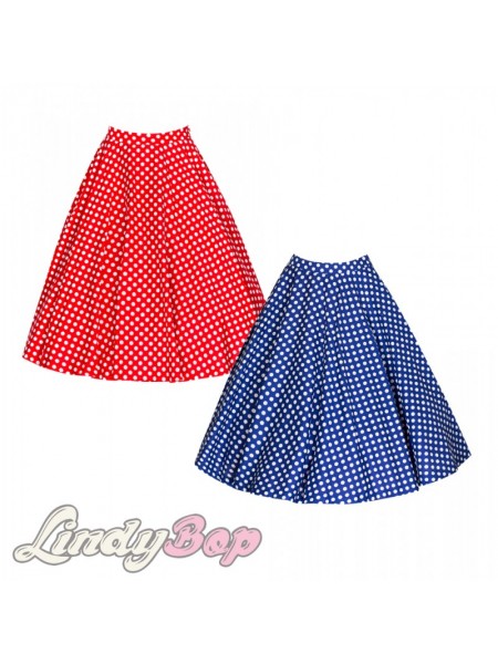 Sukně Lindy Bop modrá s bílým puntíkem anebo červená s bílým puntíkem, řasení v pase