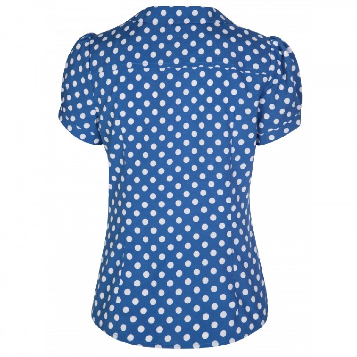 U tohoto zbožíModrý top s bílým puntíkem ve stylu 50. let, z příjemného materiálu, s krátkým rukávem.